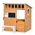 Drewniany domek dla dzieci z oknem, kwietnikiem i drzwiami