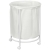 HOMCOM 100L wasmand wasbox wasmand met 3 handvatten afneembaar bamboe polyester katoen metaal bruin + wit 52 x 32 x 63 cm