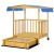 Piaskownica AIYAPLAY, drewniana skrzynia z baldachimem i siatkowymi drzwiami, ławki, ochraniacz podłogi, kolor brązowy