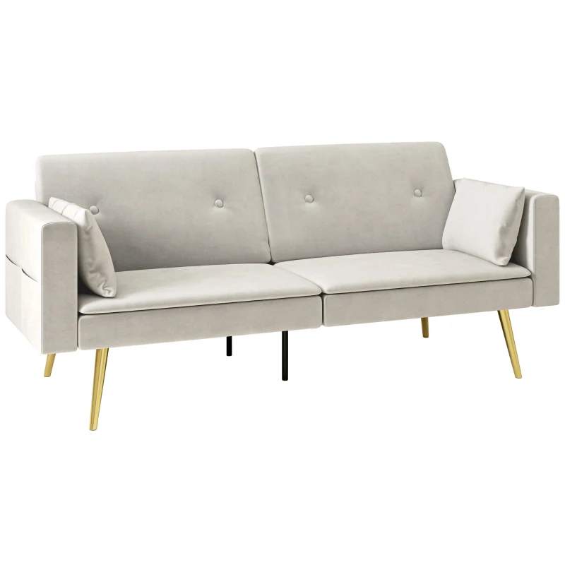 HOMCOM sofa 2 osobowa z funkcją spania regulowane oparcie miękkie poduszki pokrycie aksamitowe do salonu pokoju gościnnego Beżowy