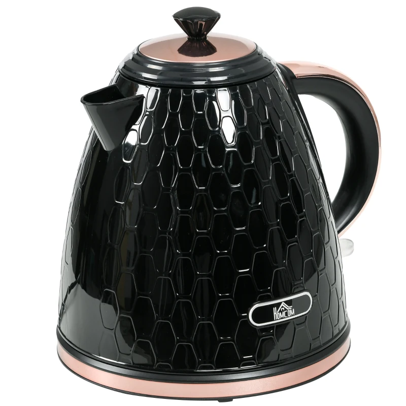 Czajnik HOMCOM ze Stali 1,7L Bez BPA, Elektryczny 2200W z Obrotową Podstawą 360°, Filtr Kalkowy, Wskaźnik Poziomu Wody, Automatyczne Wyłączanie i Ochrona przed Pracą na Sucho, Czarny