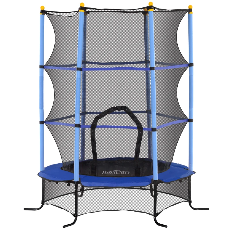 HOMCOM Dziecięca Trampolina Ø163 cm z Siatką Bezpieczeństwa, Do Użytku Wewnątrz i Na Zewnątrz, Obciążenie do 50 kg, Stal, Tworzywo, Niebieska