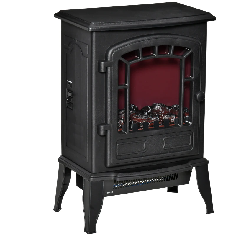 HOMCOM Elektryczny kominek z ogrzewaniem, efekt LED płomienia, 2000W, wolnostojący kominek z ochroną przed przegrzaniem, do salonu, sypialni, czarny