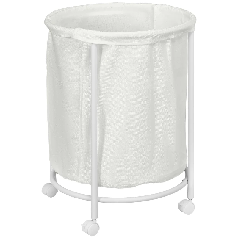 HOMCOM Kosz na Pranie 100L z Kółkami, Stelaż Stalowy, Pojemnik na Pranie z Wyjmowanym Workiem na Bieliznę do Łazienki, Kremowy