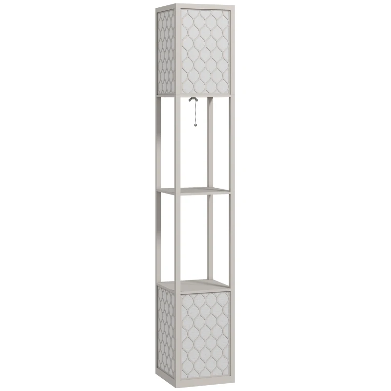 HOMCOM Lampa podłogowa w nowoczesnym designie, 2 półki, przełącznik łańcuszkowy, 26 cm x 26 cm x 156 cm, Czarny + Biały