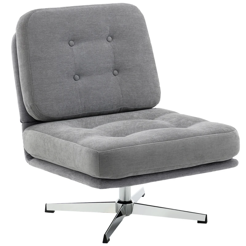 HOMCOM Obrotowy Fotel Akcentowy, Tapicerowany Fotel Czytelniczy z Chenille, Szerokim Siedziskiem, Sprężynowym Wypełnieniem i Metalowymi Nogami, Jasnoszary(m-8)