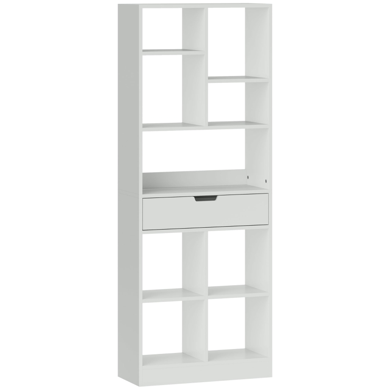 Regał na książki z 9 półkami i szufladą, biały