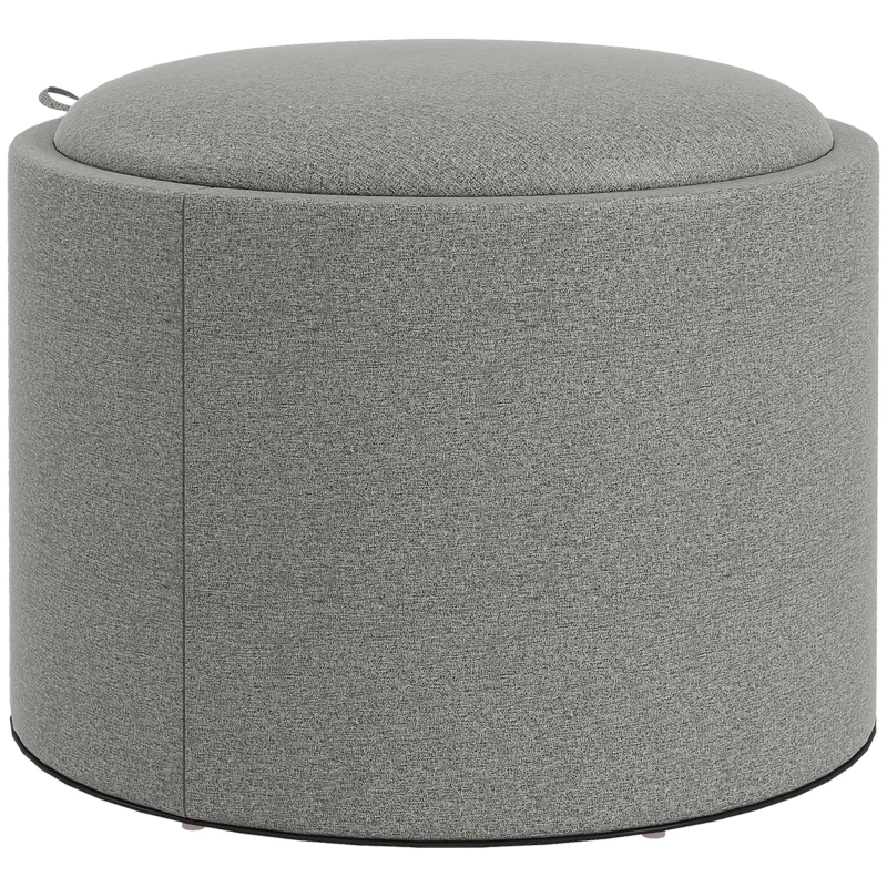 HOMCOM Pufa okrągła Pufa z przestrzenią do przechowywania, składane wieko, w stylu lnianym do salonu, sypialni, Szary, Ø56 x 42 cm