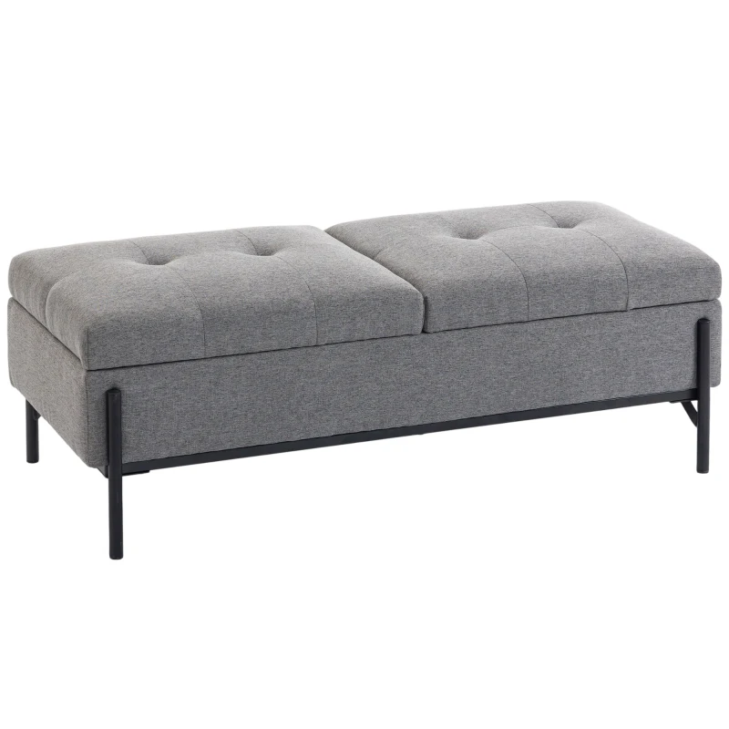 HOMCOM Ławka z pojemnikiem, tapicerowana skrzynia na łóżko z 2 przegrodami, składanymi pokrywami i wyjątkowo grubym siedziskiem, 117 x 50 x 44 cm