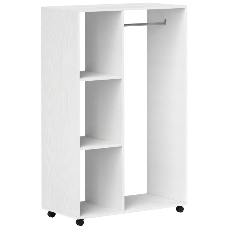 HOMCOM kledingkast, open gangkast, met kledingstangen en wielen, voor slaapkamers, E1 spaanplaat, aluminium, 80 x 40 x 128 cm, naturel