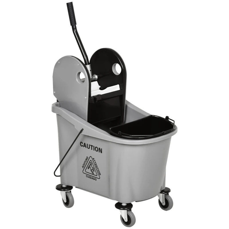 HOMCOM Wózek do Sprzątania 36 Litrowy z Mechaniźmem Wyciskającym, Szary, 54 x 41 x 91,5 cm