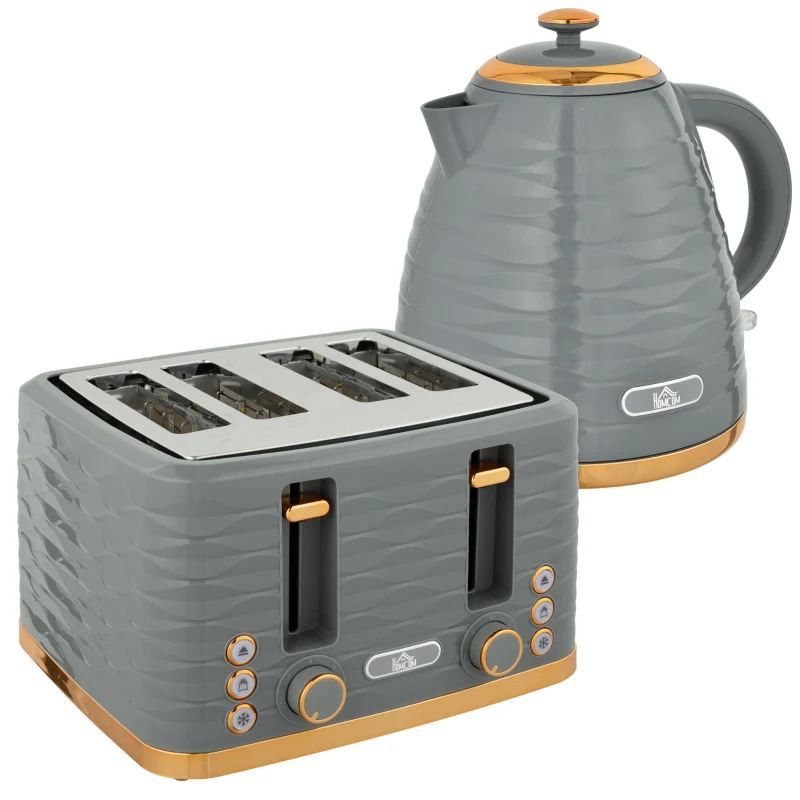 HOMCOM Czajnik 1,7L i toster na 4 kromki, szary zestaw