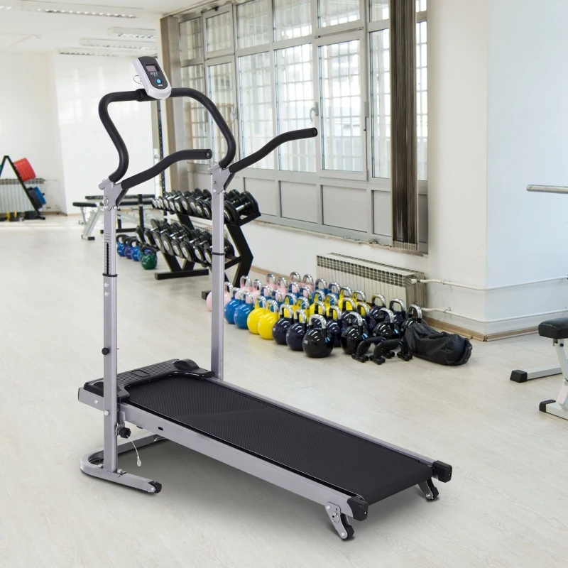 HOMCOM® BIEŻNIA NIEELEKTRYCZNA WYŚWIETLACZ LCD 3 STOPNIE POCHYLENIA SKŁADANA stal 123 X 58,5 X 115-140 cm(m-10)