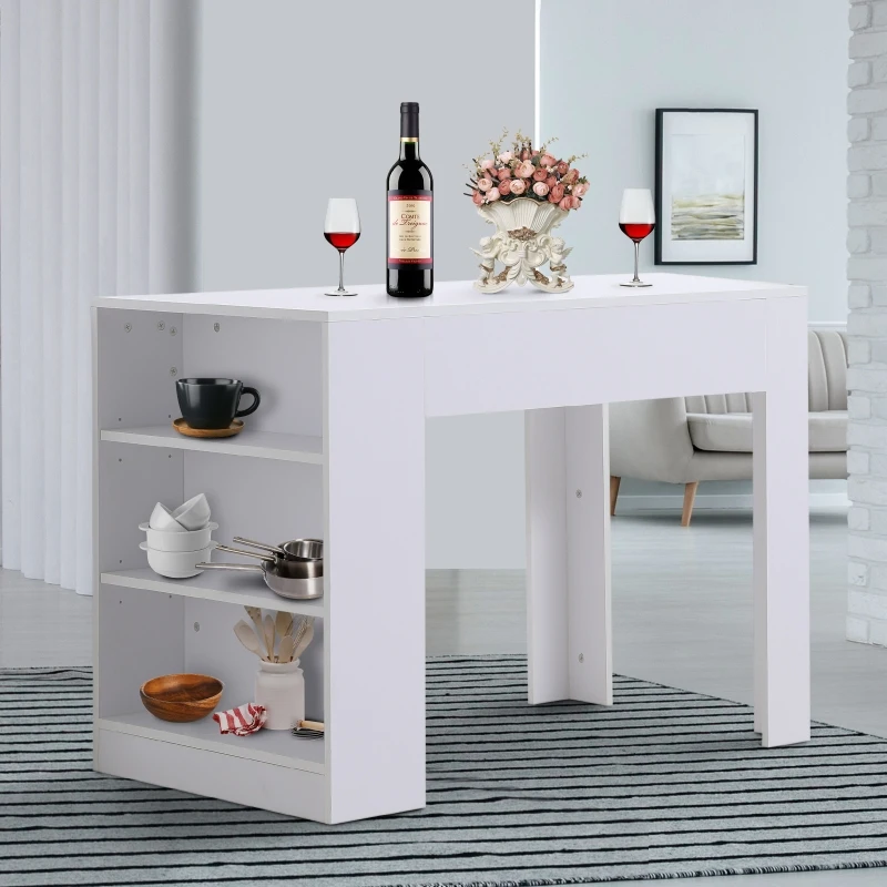 HOMCOM® STÓŁ BAROWY STÓŁ BISTRO BUFET 3 PÓŁKI biały(m-6)