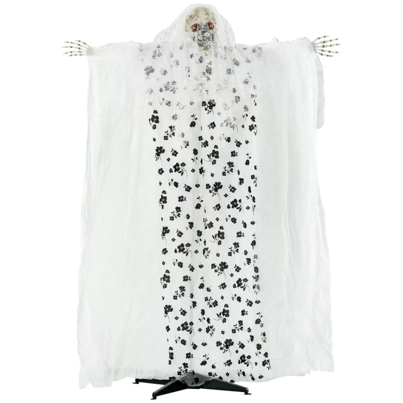 Outsunny 175cm Halloween Dekoracja Geisterbraut Hängend Skelett Schädel Augenglühen Horror-Geräusche mit Spezialeffekten und Soundfunktion In Lebensgröße Indoor Outdoor Deko