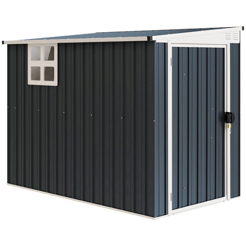• Efektywna wentylacja: Nasze metalowe domki ogrodowe zostały zaprojektowane z myślą o maksymalnym komforcie i efektywności. Wyposażone w dwie otwory wentylacyjne oraz przezroczyste okno, zapewniają optymalny przepływ powietrza, co chroni Twoje narzędzia przed wilgocią i pleśnią.