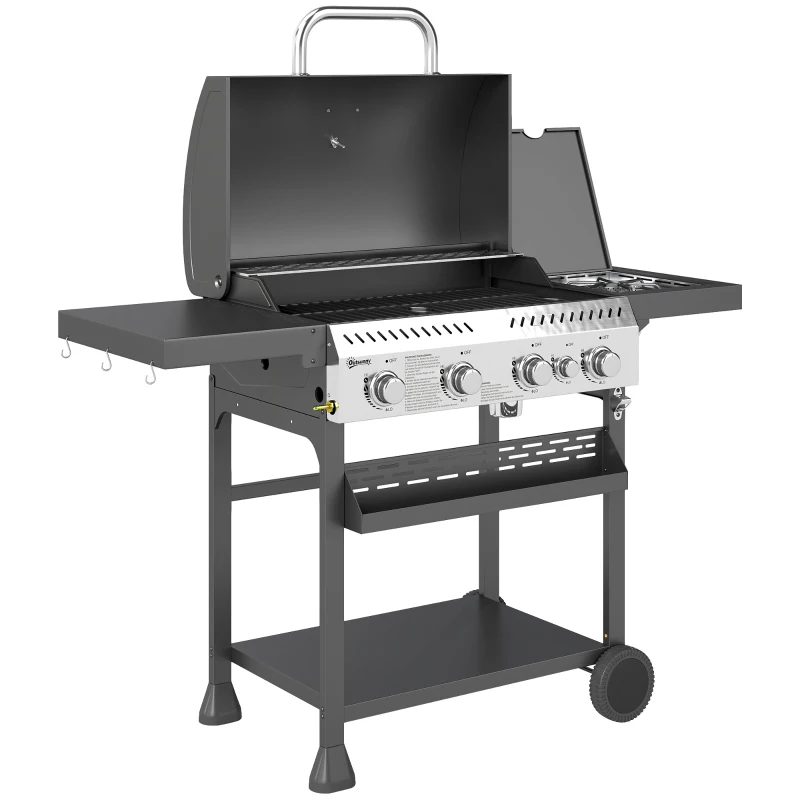 Grill gazowy 12 kW, 4+1 palników, stal nierdzewna, boczny palnik
