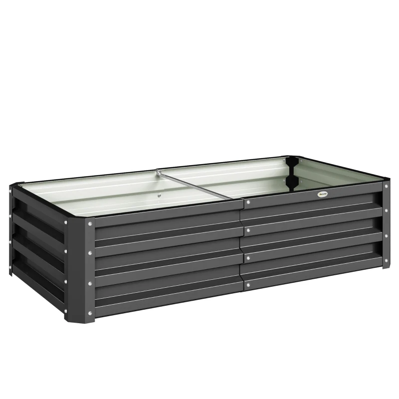 Outsunny Podwyższona grządka z pudełkiem na rośliny, odporna na warunki atmosferyczne, otwarta podłoga, ocynkowana stal, 120 cm x 60 cm x 30,5 cm, Szary