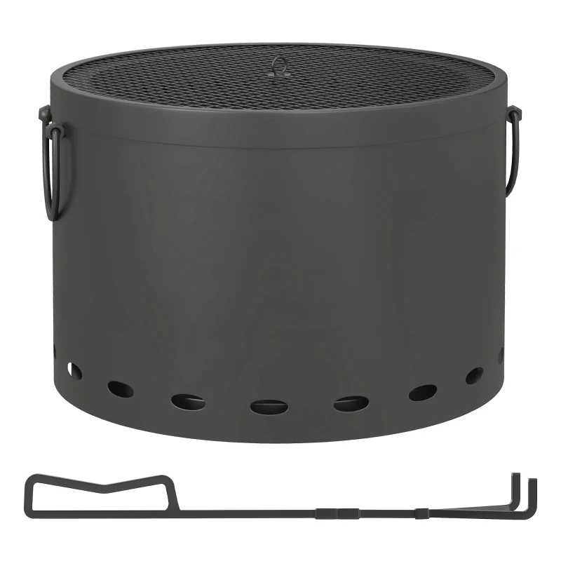 Outsunny Kolumna Ogrodowa, Ø38 cm Bezlustrowa Kolumna Ogniowa z Uchwytem, Kosz na Ogień z Hakem i Ochroną przed Iskrzeniem, Ogrzewanie Stołowe na Ogród, Piknik, Metal Ciemnoszary