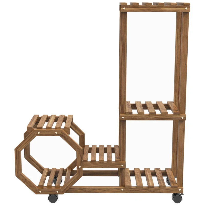 • Wszechstronne zastosowanie: Ten drewniany stojak na rośliny może również służyć jako regał prezentacyjny na dekoracje, ramki na zdjęcia czy inne przedmioty.