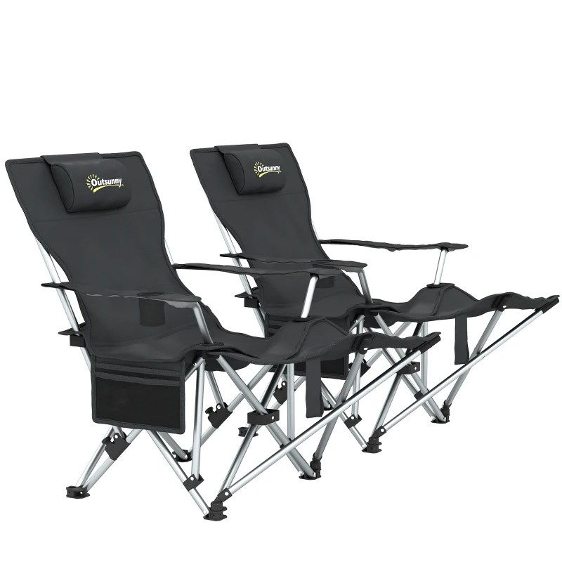 Fotel campingowy składany 2 szt., z podnóżkiem, lekki