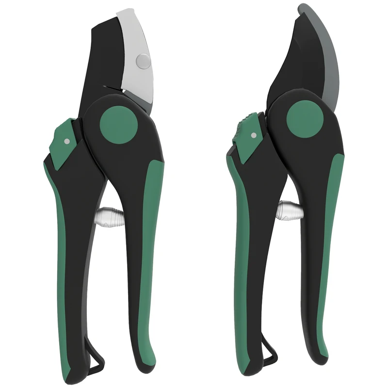 Zestaw narzędzi ogrodowych Outsunny 2 sztuki, Metalowe narzędzia ogrodowe z nożycami Bypass i Amboss, Zestaw do ogrodnictwa, Prezenty ogrodnicze dla kobiet i mężczyzn, Zielony+Czarny