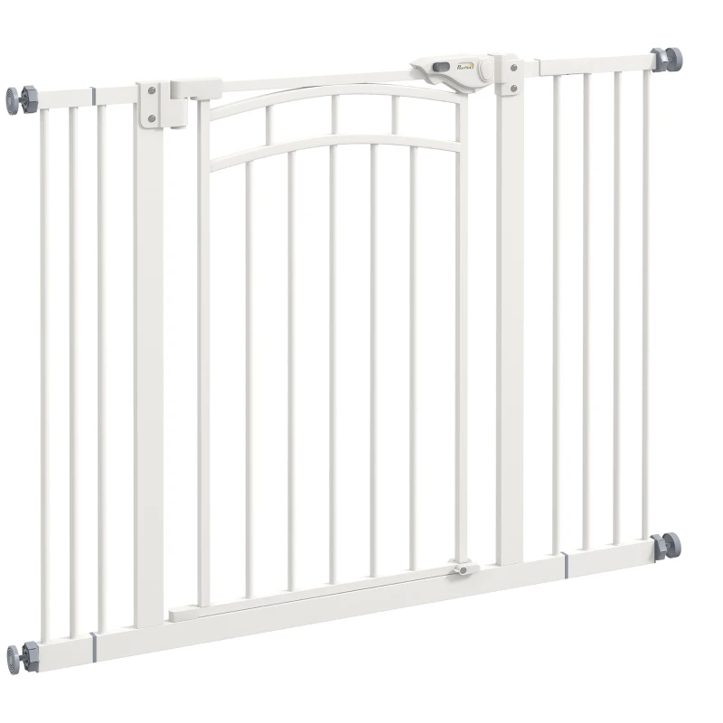 Bramka schodowa PawHut dla psów z dwoma przedłużeniami, bramka o automatycznym zamykaniu, jednoręczne otwieranie, 74-100 cm, dla małych i średnich psów, biały