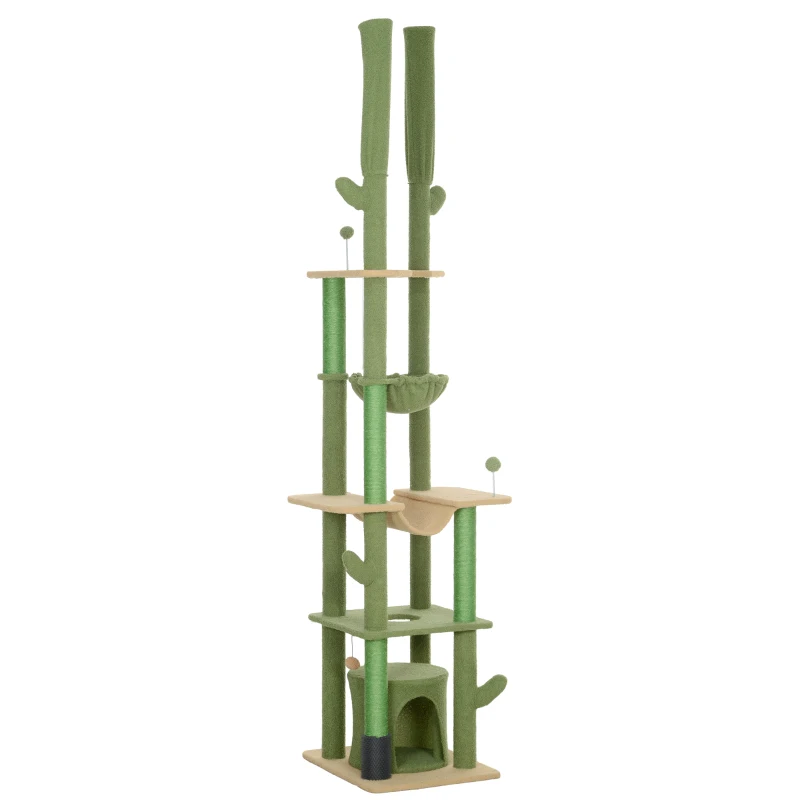 Przekształć swój dom w raj dla kota z wysokim na sufit drapakiem PawHut w kształcie kaktusa! Ten regulowany drapak (225-255 cm) idealnie wpasuje się w każdy kąt, oferując dwie przytulne hamaki oraz miękką budkę do relaksu. Stabilna podstawa i wysokie słupy do drapania zapewniają bezpieczną przestrzeń do zabawy, chroniąc jednocześnie Twoje meble przed zadrapaniami. Podaruj swojej kotce idealne miejsce do zabawy i odpoczynku, które z pewnością stanie się jej ulubionym zakątkiem!