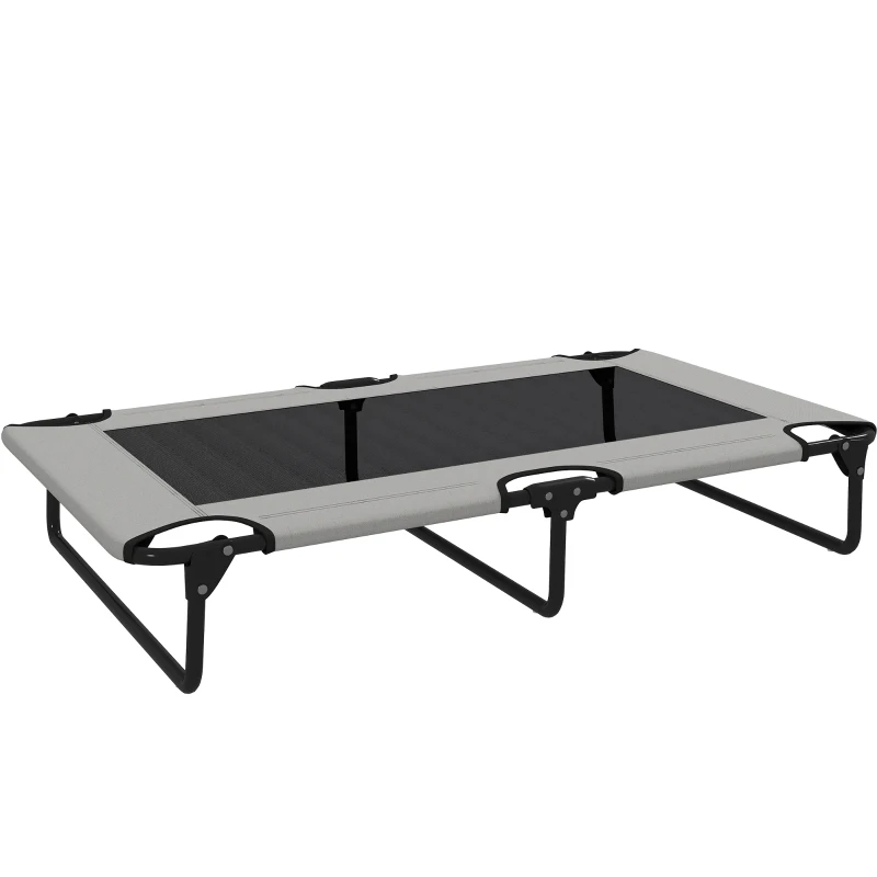 PawHut Składane Podniesione Legowisko dla Psów, Zewnętrzna Leżanka z Siatką, Oddychająca, dla Dużych Psów, Jasnoszary Oxford 107 x 61 x 20 cm