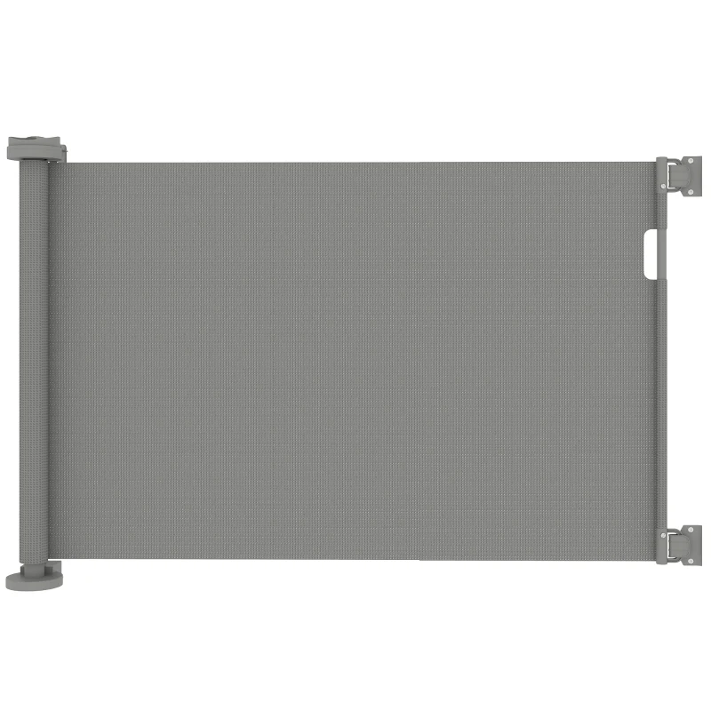 PawHut Retractable Dog Gate, 0-136 cm Mesh Stair Gate, Safety Gate for Small Dogs, Doorways, Hallways, Stairways, Indoor, Outdoor, Grey(m-1)
