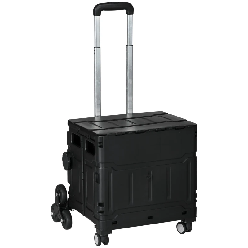 Wózek zakupowy HOMCOM, Składany, Treppensteiger, z teleskopowym uchwytem, do 65 kg, Czarny(m-9)
